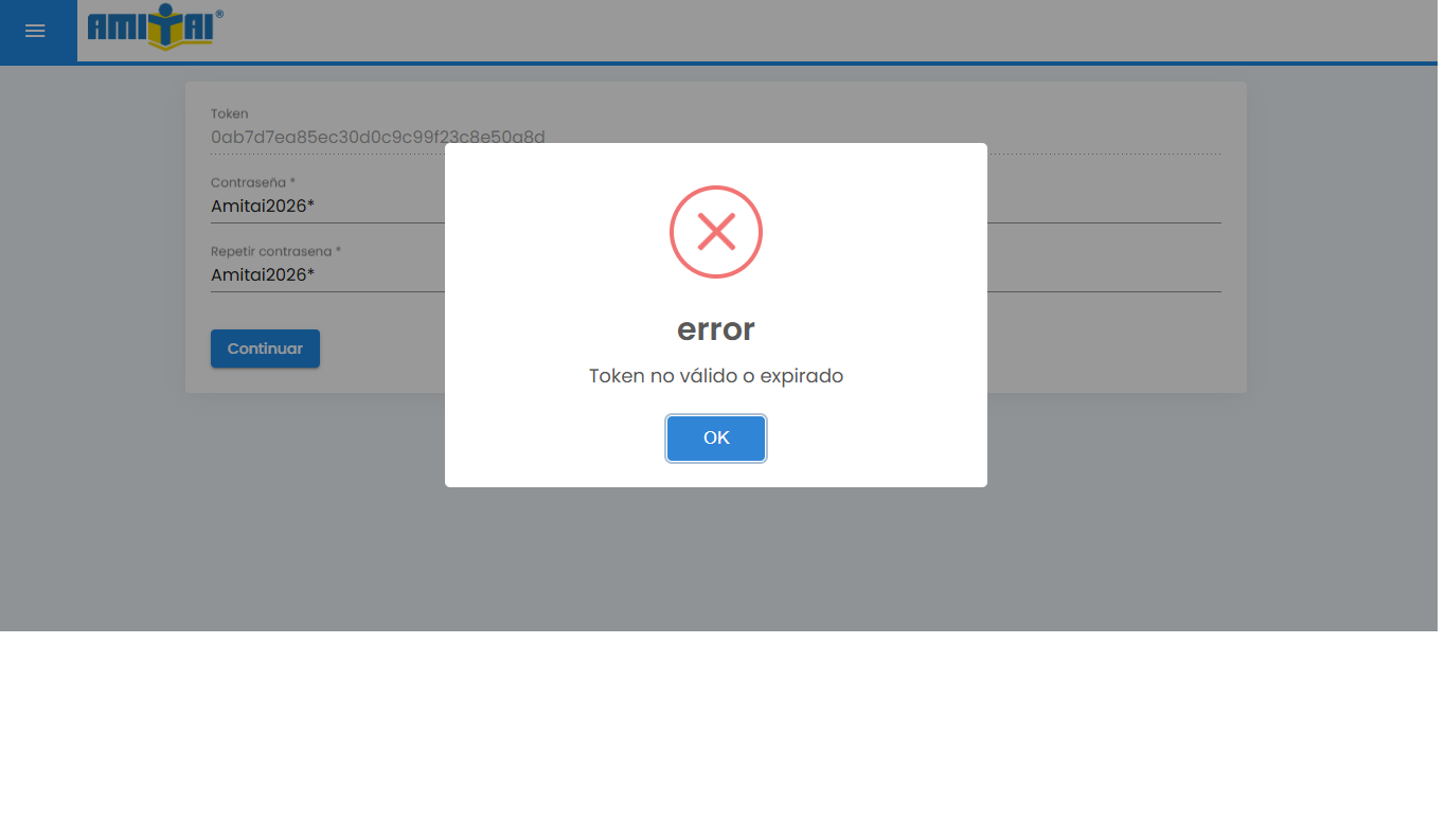 Cuando se recupera contraseña al seleccionar la liga que manda a generar nueva contraseña doy clic en "continuar" y me indica que se guarda correctamente (agrego imagen), después de eso me regresar nuevamente a la misma pantalla y al volver a dar clic en continuar me arroja un error que el token es incorrecto (anexo imagen). Al guardar en primer momento te debería cambiar la pantalla por la de acceso