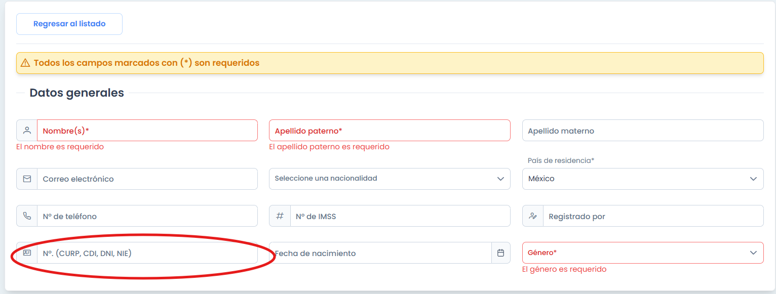 cerradaAñadir RUT en campo No. (CURP, CDI, DNI, NIE)