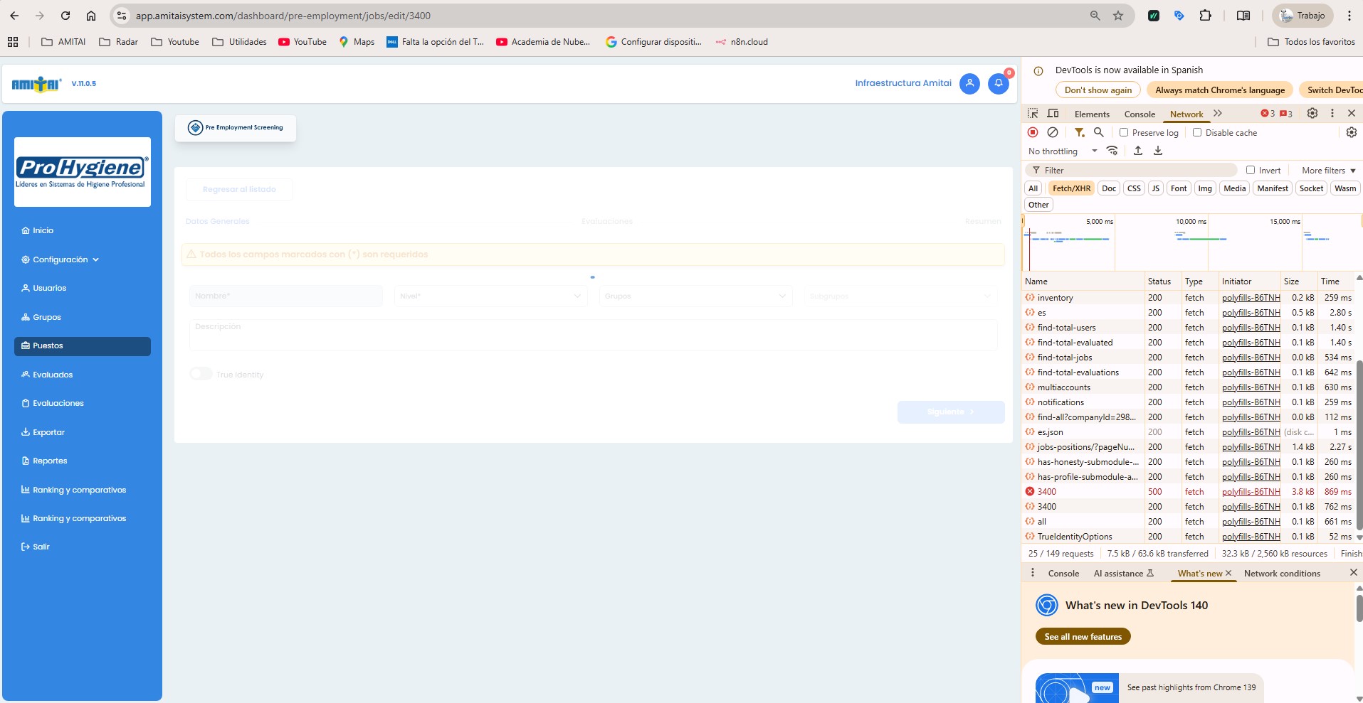 abiertaEdicion de puestos, cuando la empresa unicamente tiene el producto de Integridad y se edita algun puesto la pantalla se queda CARGANDO sin avanzar