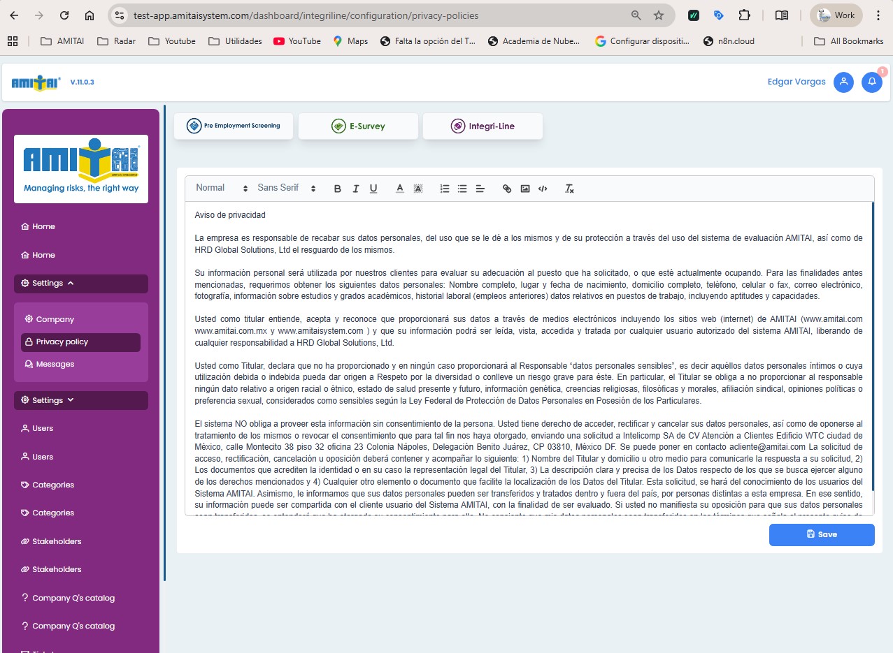 abiertaEdición Aviso de Privacidad, al copiar un texto plano al aviso de privacidad pierde el formato al ingresar en la plataforma como candidato o denunciante