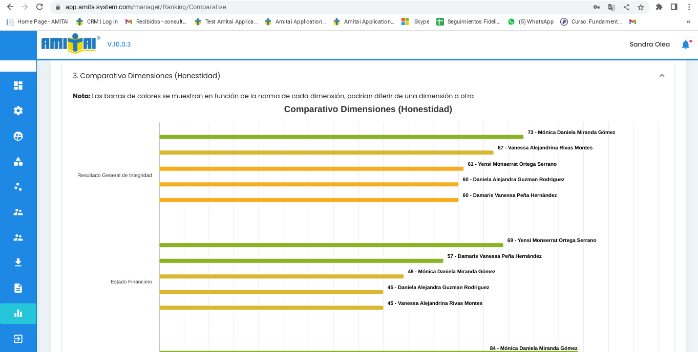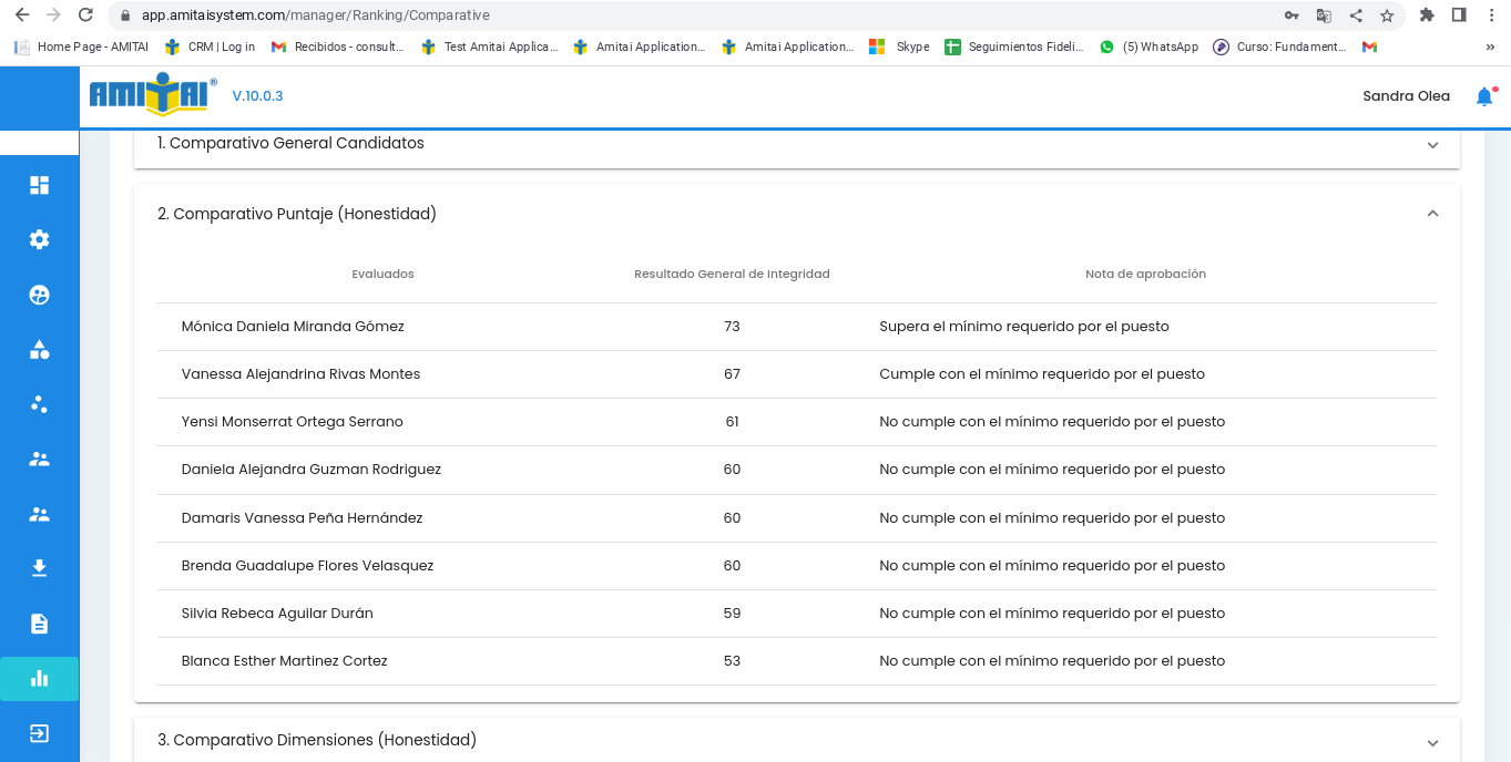 Cuando se hace el comparativo de evaluados, tanto en comparativo general como en comparativo de puntajes, aparecen todas las personas que se seleccionan, pero en comparativo de dimensiones no aparecen todos.