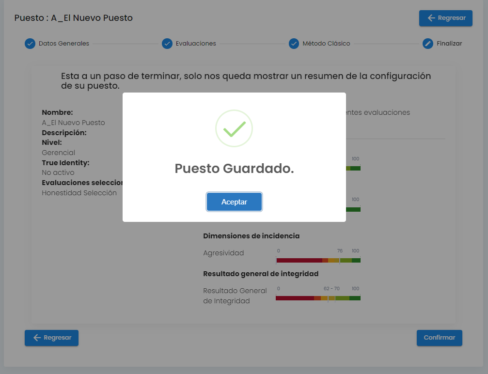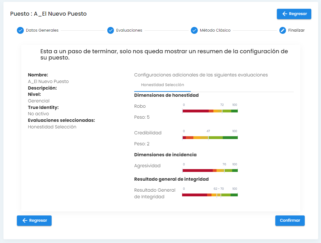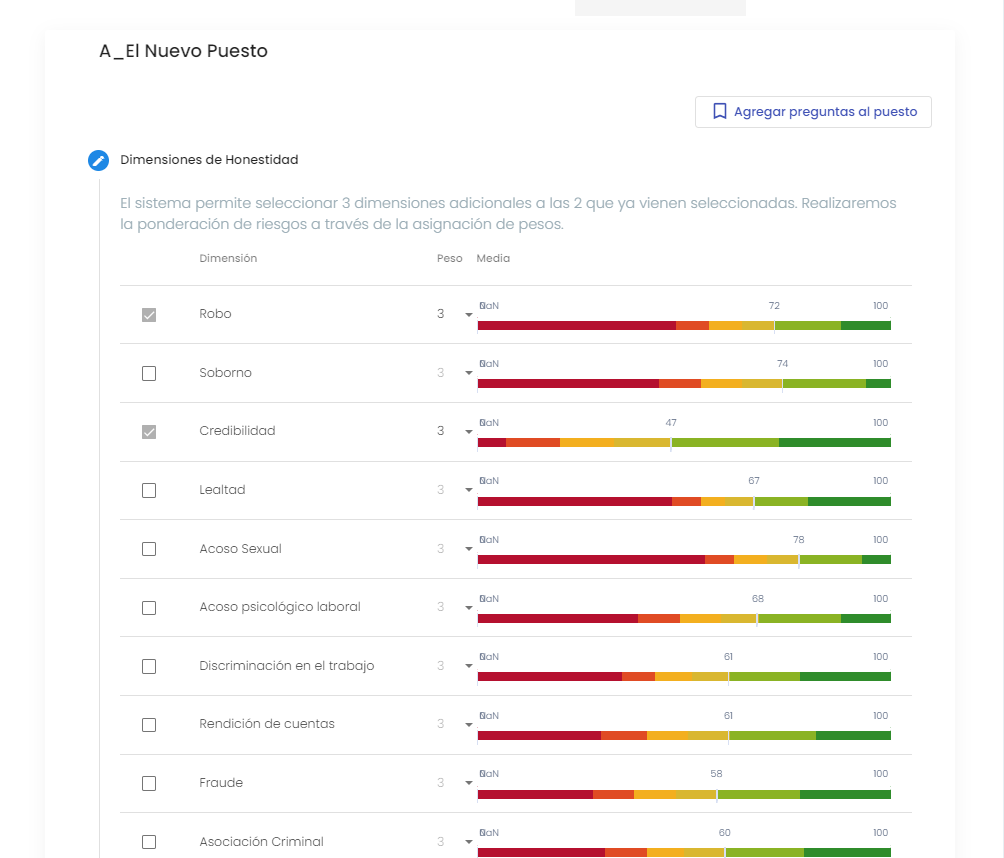 Se adjuntan imagenes donde se muestra que al crear un nuevo puesto guarda con el peso 3 en todas las dimensiones, sin tomar en cuenta el peso elegido por el usuario.