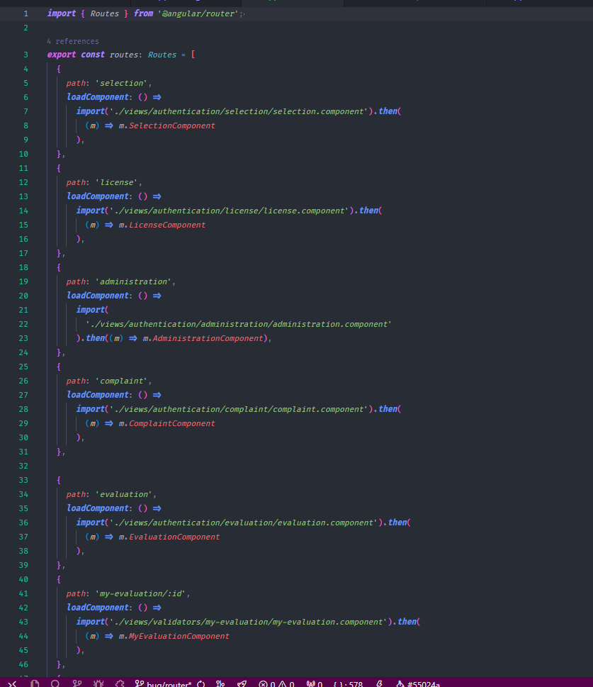 Cambio de importación y carga de las rutas de la aplicación código angular v17.