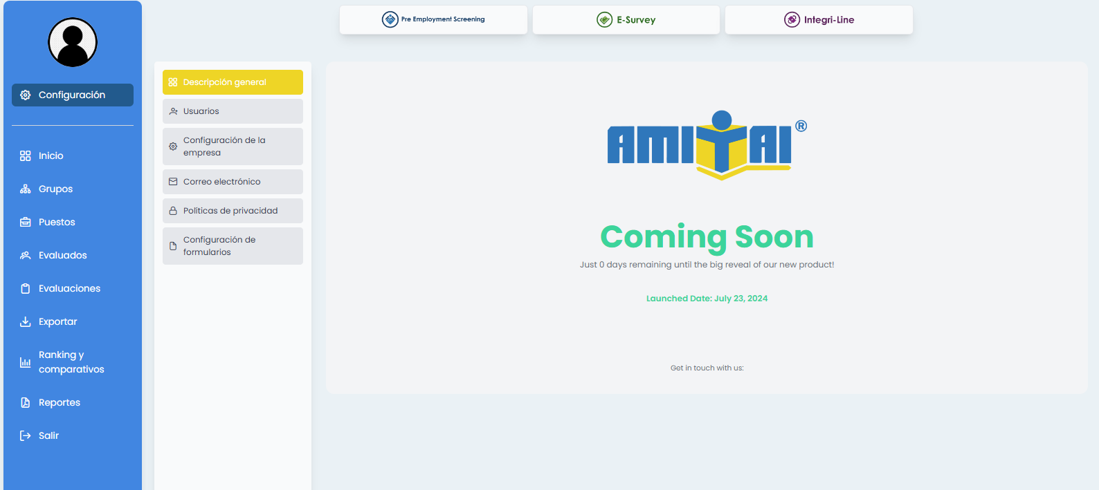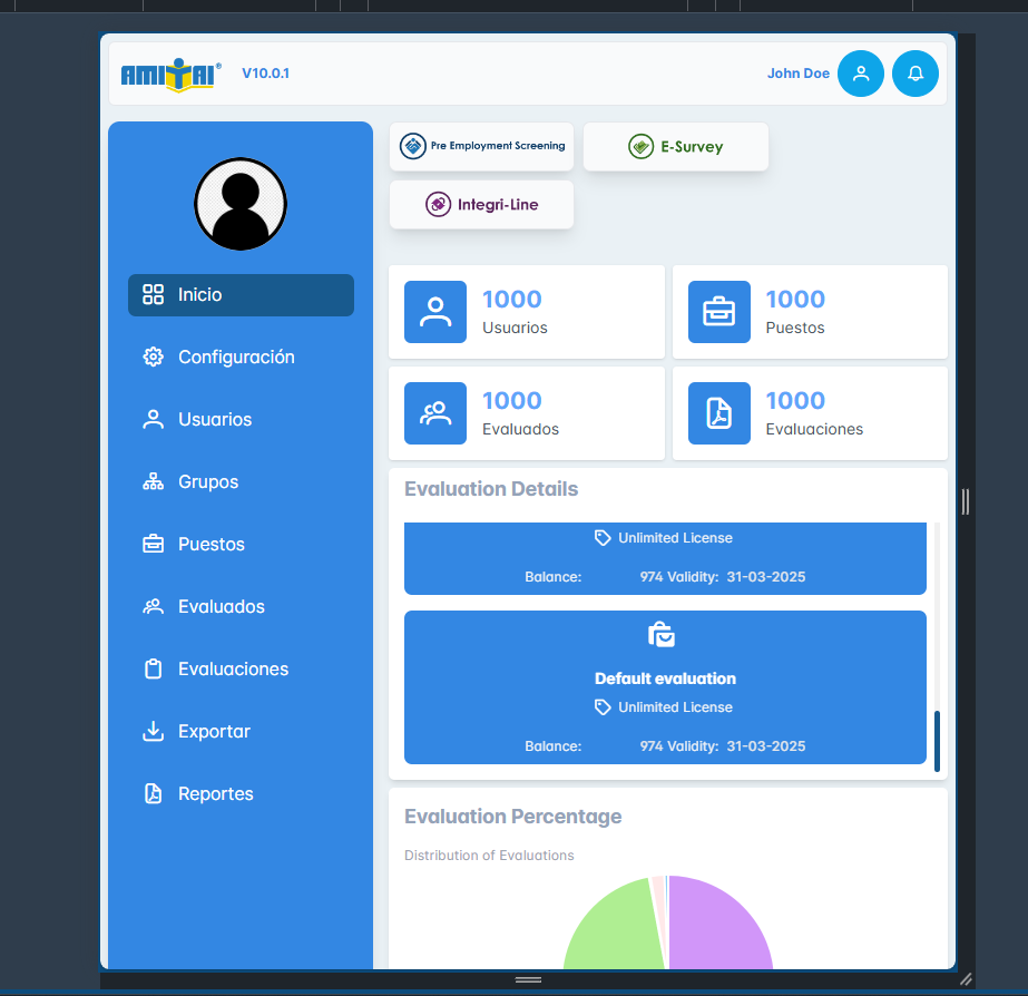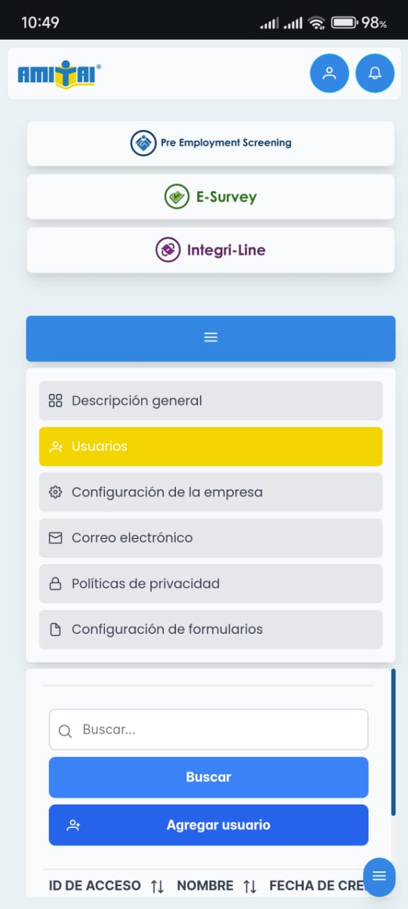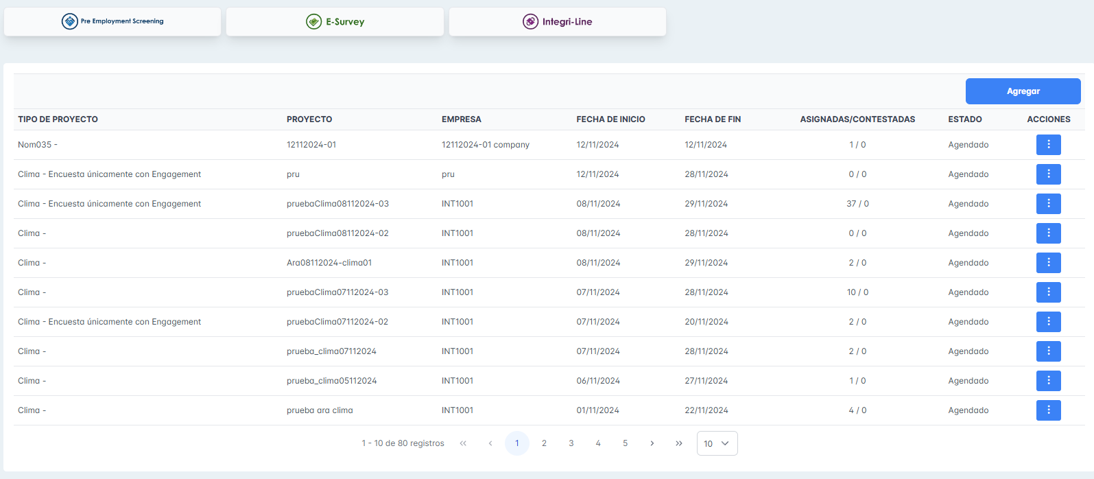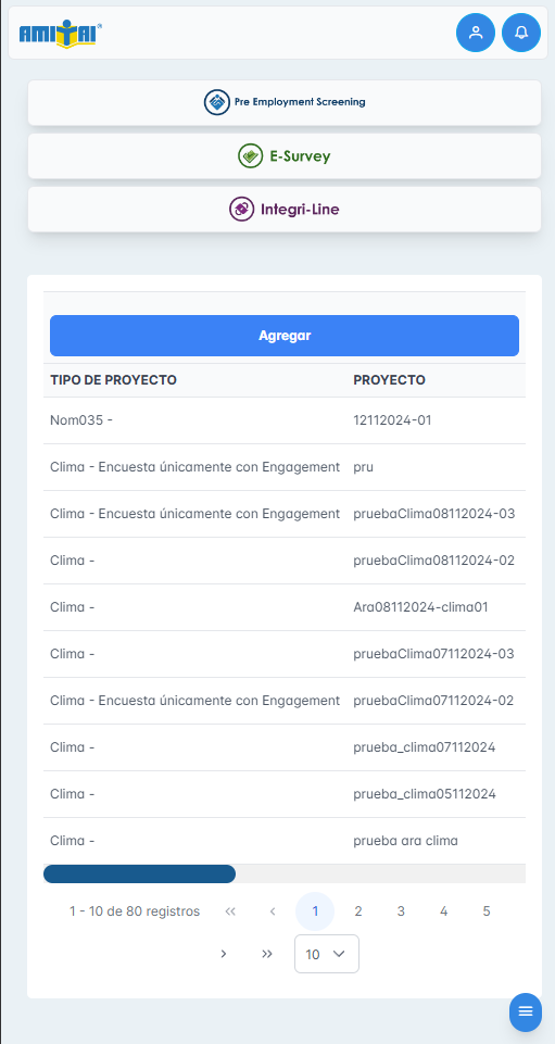Se adjuntan capturas de la pantalla de proyectos del módulo de E-Survey