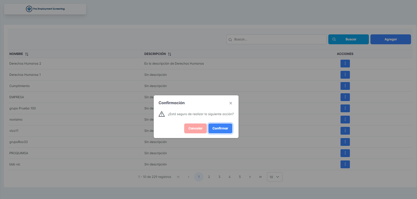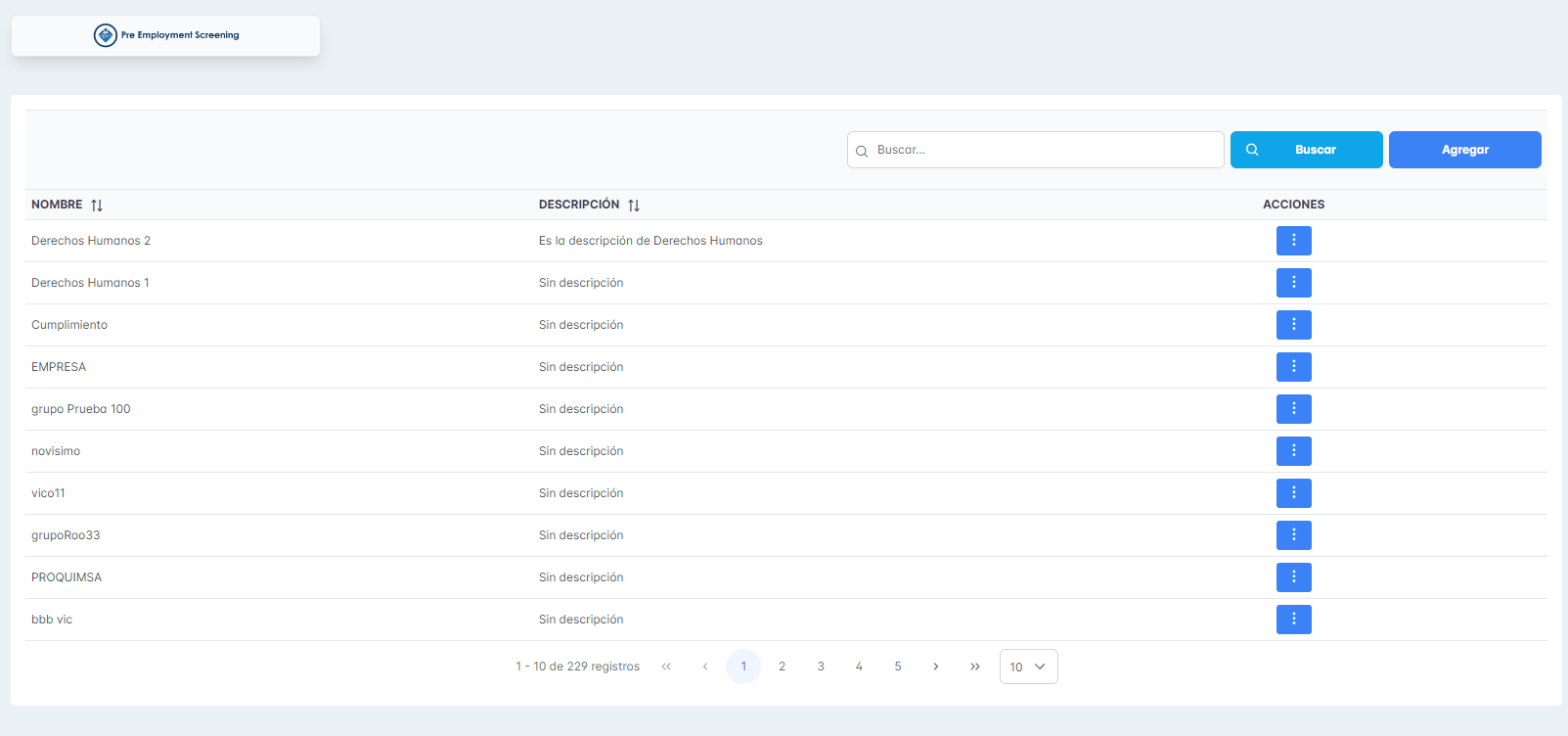 Pre-employment: Users page