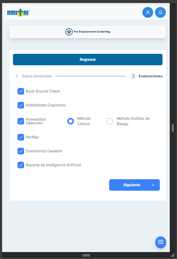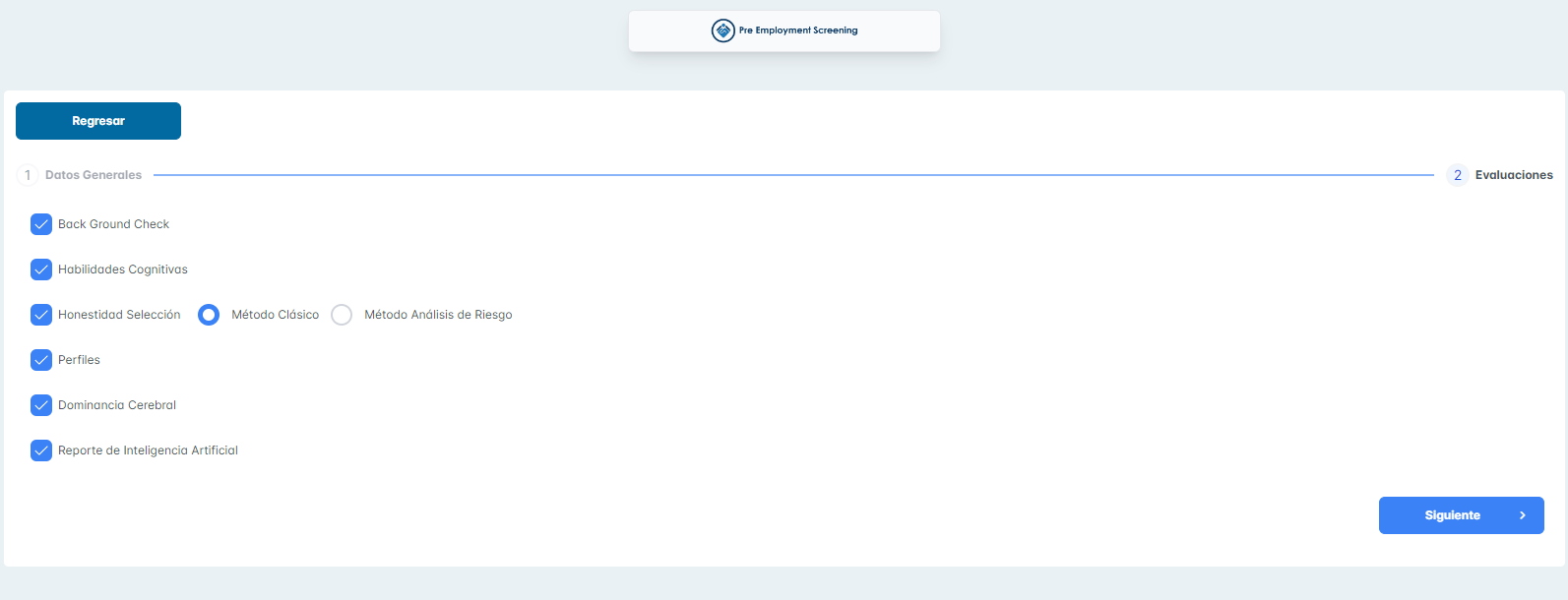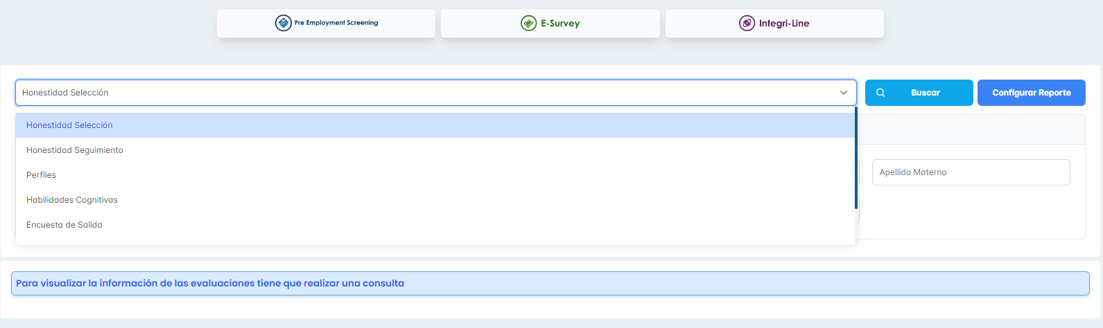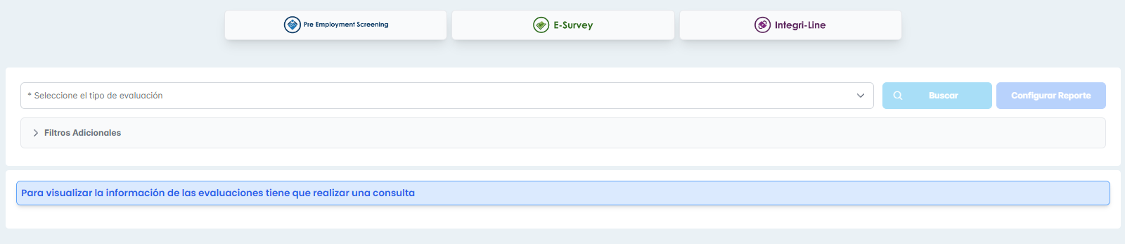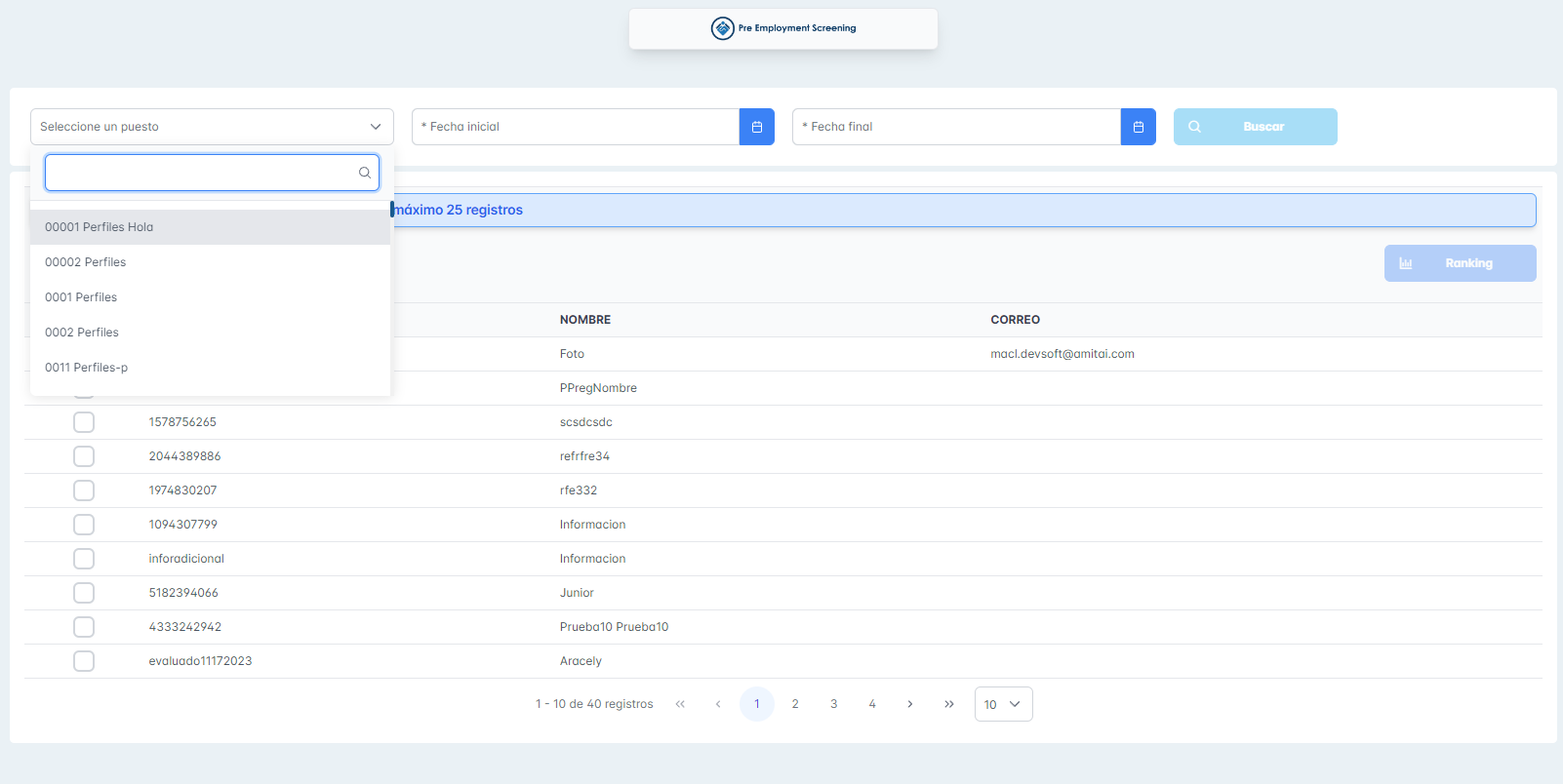 Se adjuntan capturas de los filtros del módulo de reportes pre employment