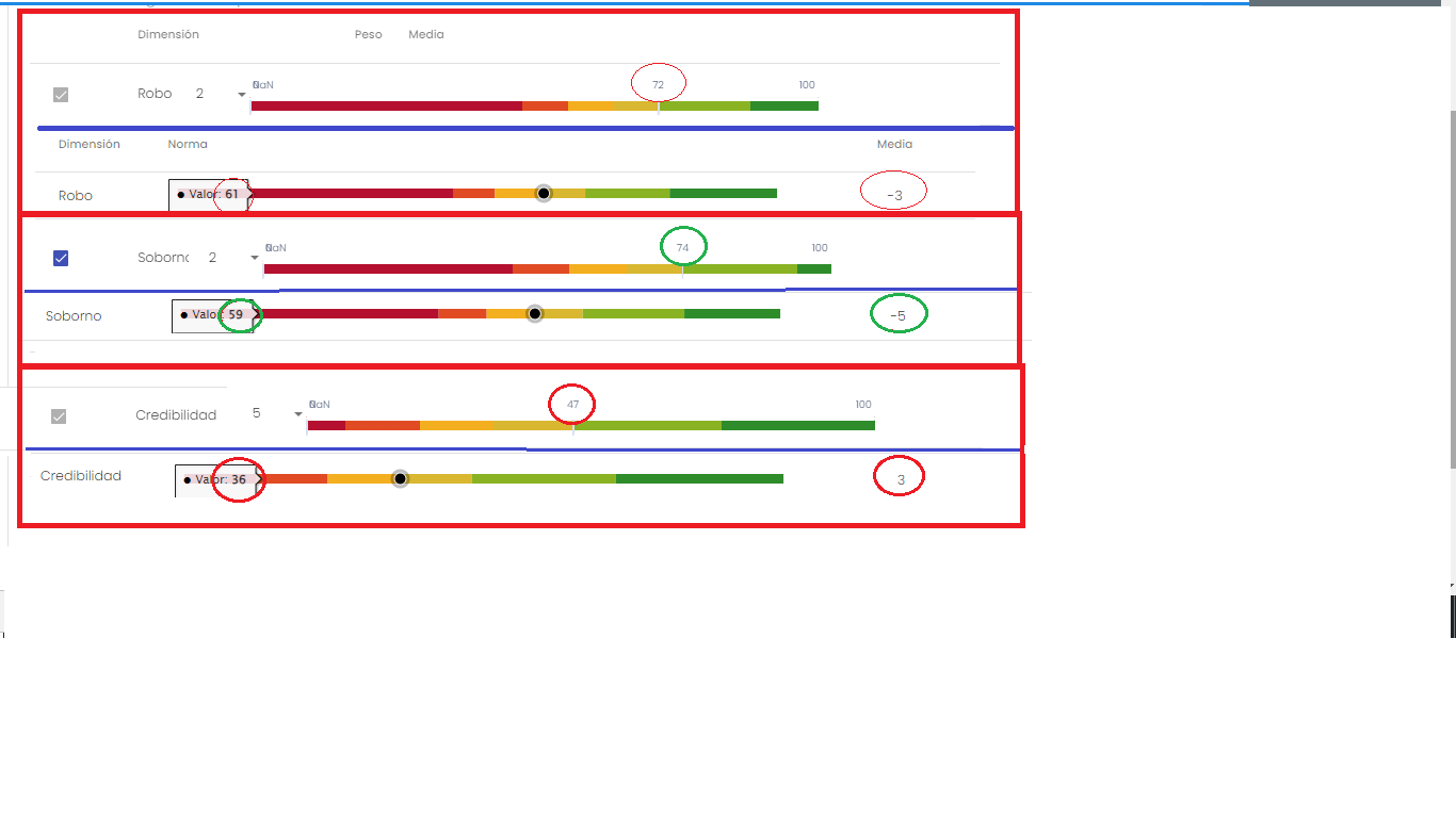 Al momento de solicitar la subnorma el sistema te indica como quedaría el puesto sin embargo los cambios en algunas dimensiones coinciden y en otras no, ejemplo en Robo la media de la norma actual es de 72 y menciona que se ajusta bajando -3 puntos por lo cual quedaría en 69, sin embargo en el sistema indica que quedaría en 61. Anexo imagen