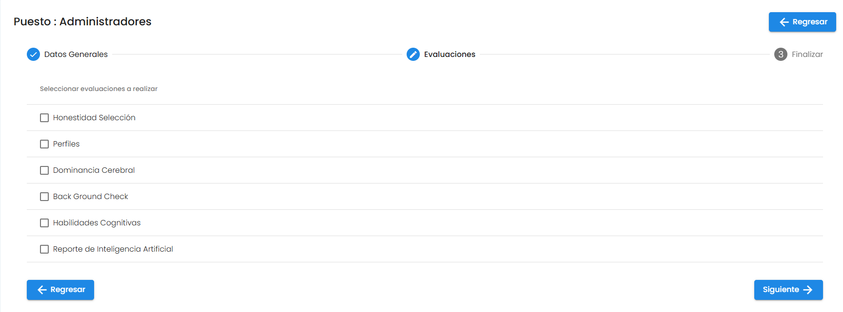 Al momento de configurar un puesto, poder añadir la opción de "encuesta de permanencia" a la pantalla de evaluaciones ya que actualmente no se muestra como una evaluación mas para seleccionar