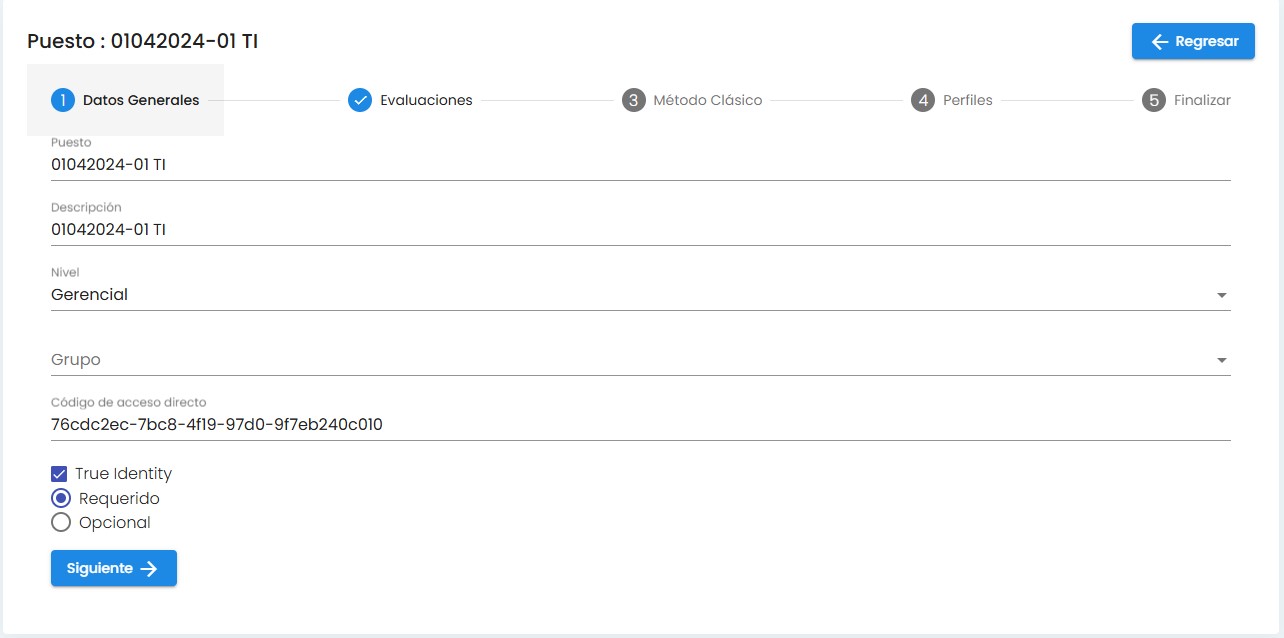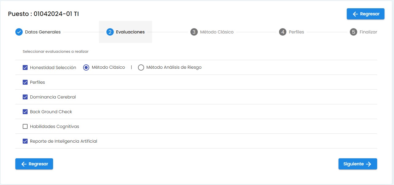 Al Crear un puesto con el modulo de Integridad , capturando la seccion de datos generales y evaluaciones. Se pueden asignar evaluaciones sin ambargo al iniciar la prueba dice que no tiene evaluaciones asignadas