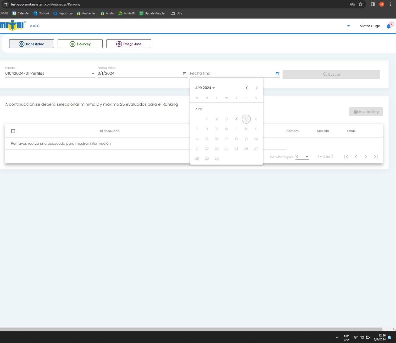 cerradaRanking y comparativos: el rango de fechas se establece en base a la primera y ultima evaluacion, el calendario muestra un dia antes de la fecha de la ultima evaluacion