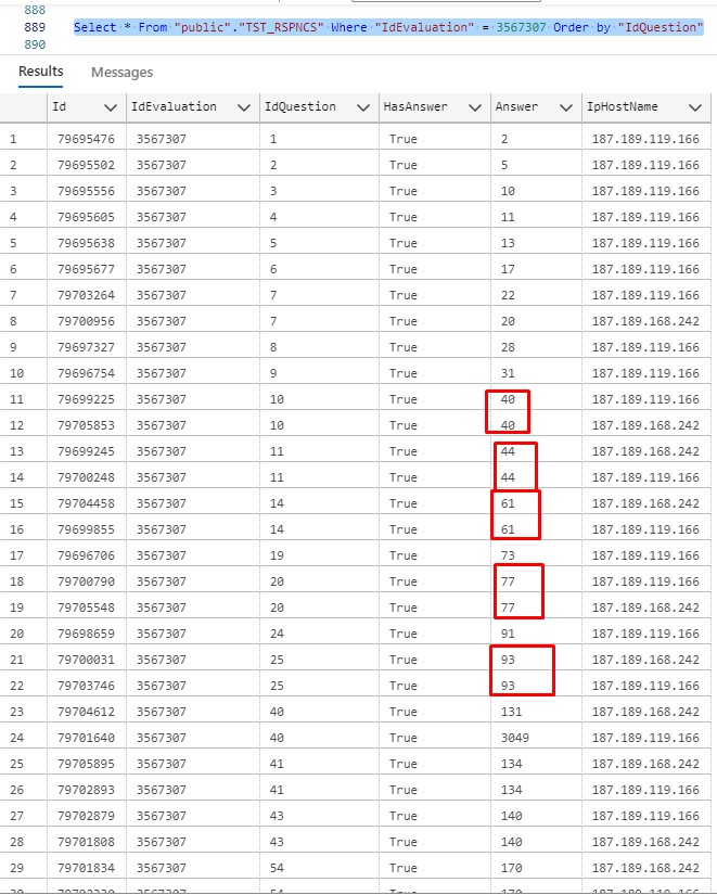 Duplicidad en respuestas de evaluación