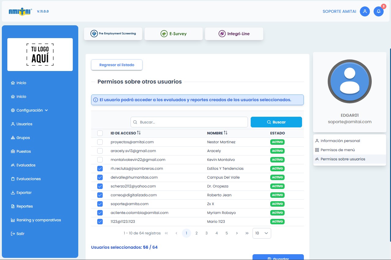 - Se generan registros de puestos, evaluados y reportes con este nuevo usuario.