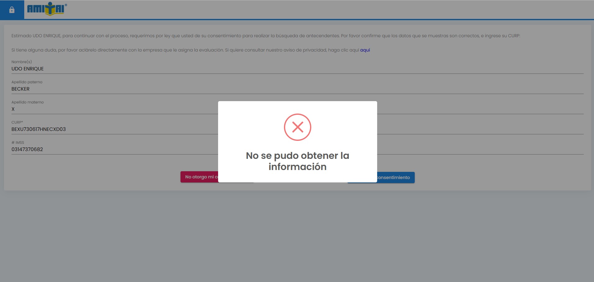 Error al autorizar el Backgraund del curp: BEXU730617HNECXD03 NSS: 03147370682