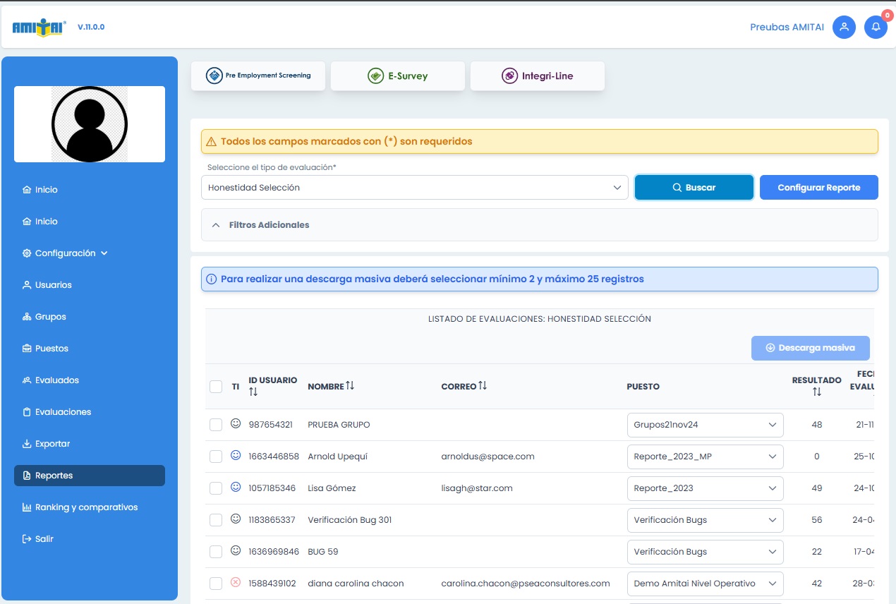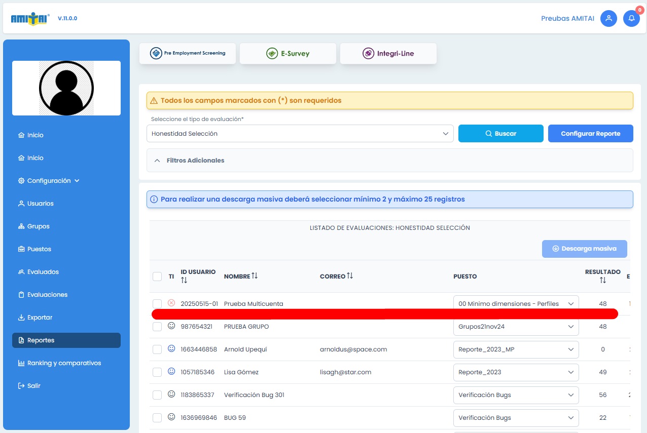 Usuario en la cuenta nativa PRU4454 , prueba@amitai.com, pwd: 123456789